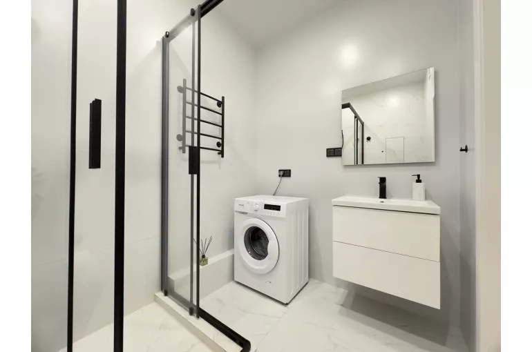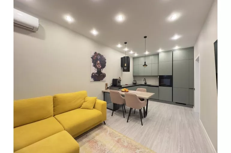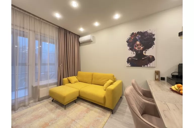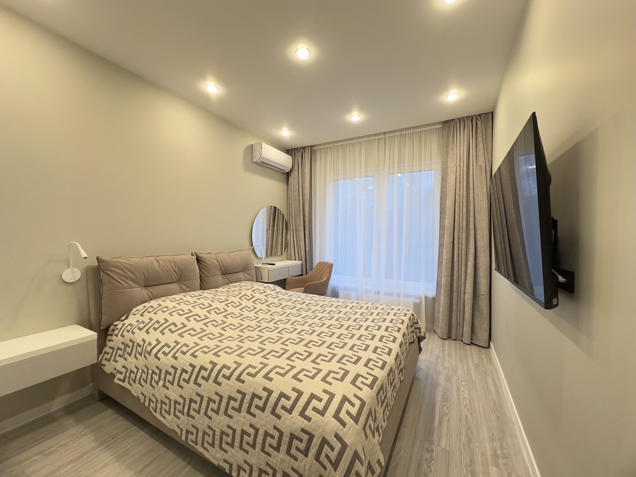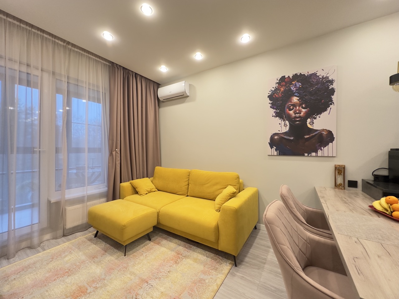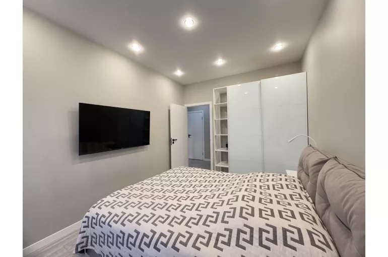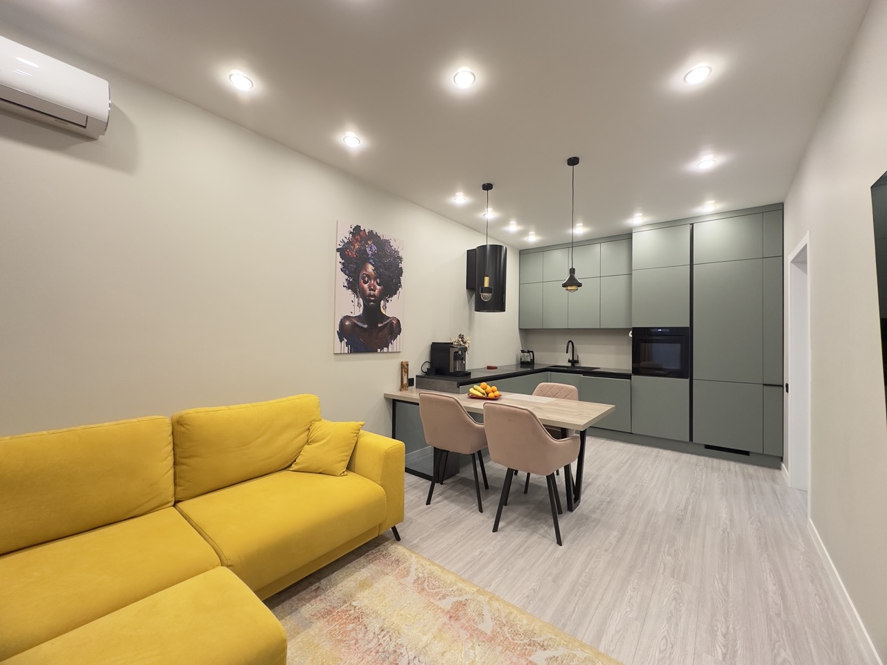 Отделка: Чистовая отделка с мебелью, в комплект входит кухонный гарнитур от премиального производителя – мебельной фабрики «Мария» с техникой. Мебель в детской (трансформер – превращается в рабочее место и широкую удобную кровать) и мебель в спальне оговариваются отдельно. Широкая утепленная лоджия оснащена теплым полом. В квартире установлена Сплит система кондиционирования, система умного дома.