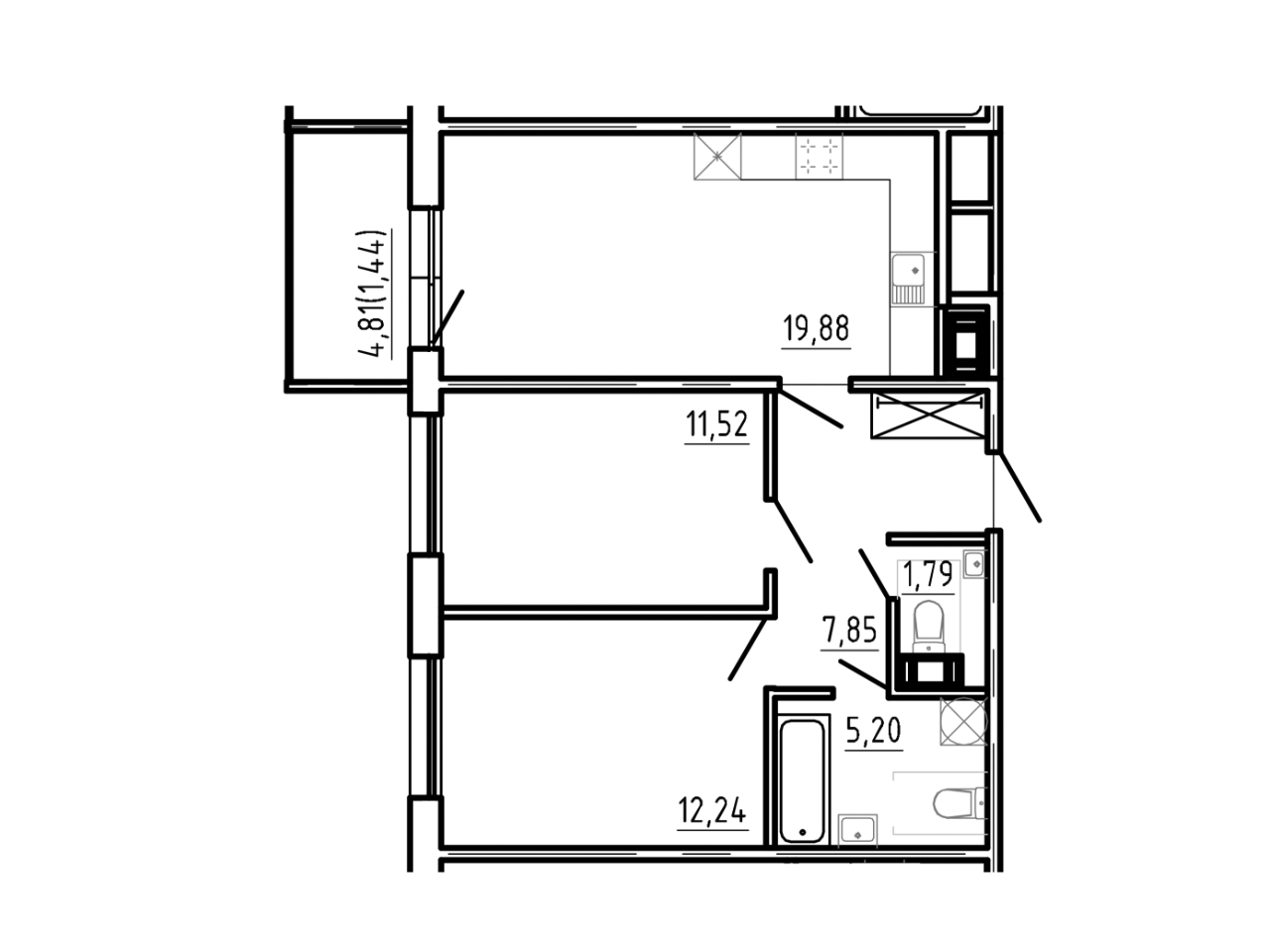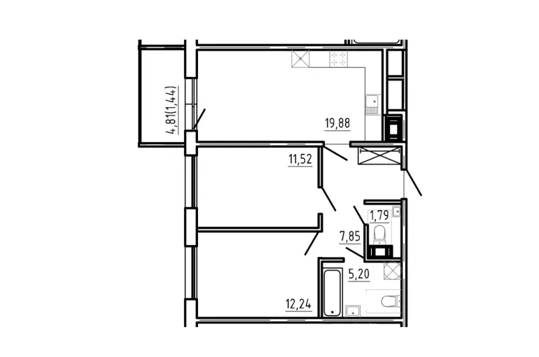 Объект: двухкомнатная квартира‑апартамент площадью 64,2 м² в корпусе WOOD  4‑й этаж из 5-ти.